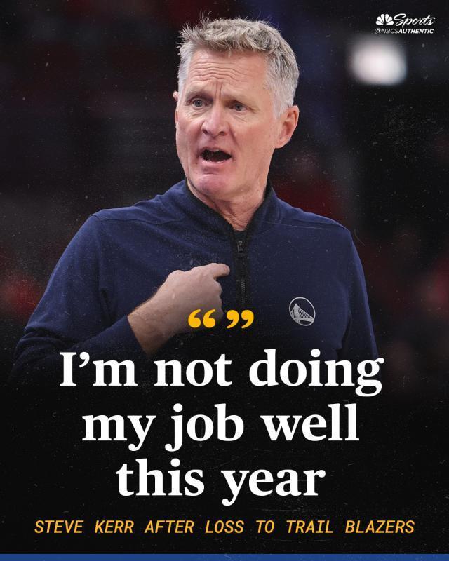 北京时间12月15日,勇士客场131比136不敌开拓者,库里命中12记三分、狂砍48分。输球后,勇士主帅史蒂夫·科尔直言不讳地表示:“本赛季到目前为止,我没能把自己的工作做好。”