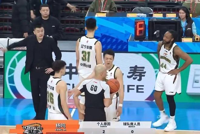 另外一边,裁判已经让比赛继续,陈盈骏将球罚中。由于当时辽宁男篮的犯规次数已满,陈盈骏还要继续执行两次罚篮。就在这个时候,一直喋喋不休的杨鸣在场边扒拉了一下裁判。也就是这个动作,让被扒拉的裁判果断又给了杨鸣一个技术犯规。这样的话,杨鸣就在这个回合里连续吃到了两次技术犯规,被驱逐出场。被驱逐出场后,杨鸣的情绪依旧非常激动,继续和裁判大声争辩,随后和球队安排了一下后,就离开了赛场。
